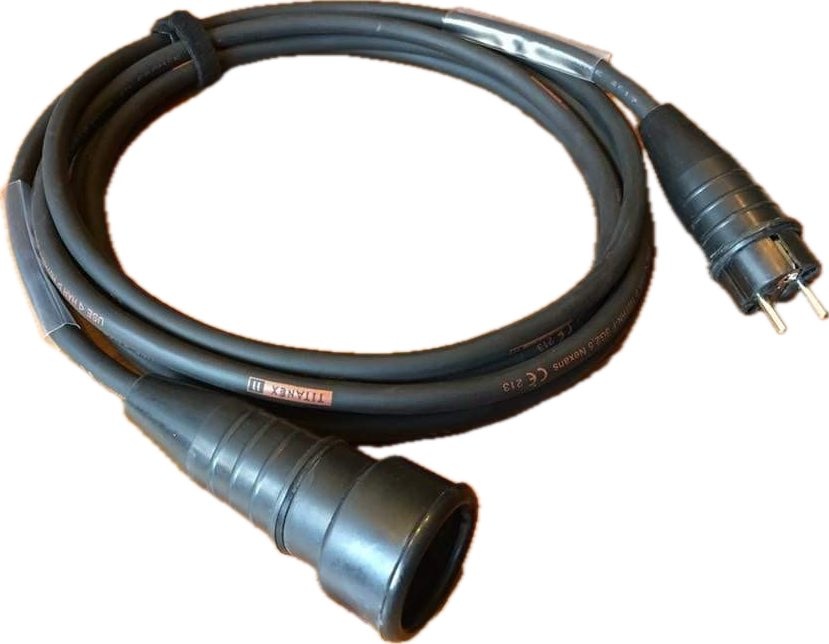 Schuko verlengkabel gemaakt met Nexans Titanex h07rn Neopreen kabel met een dikte van 3x2,5 mm². Deze kabel heeft zich al jarenlang bewezen in de bouw en showbizz wereld. Stevig en soepel.